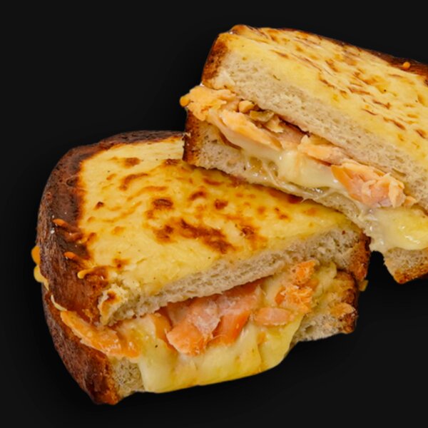 A good country bread, a delicious flaked cooked salmon, and a creamy béchamel sauce, in a more than generous size.